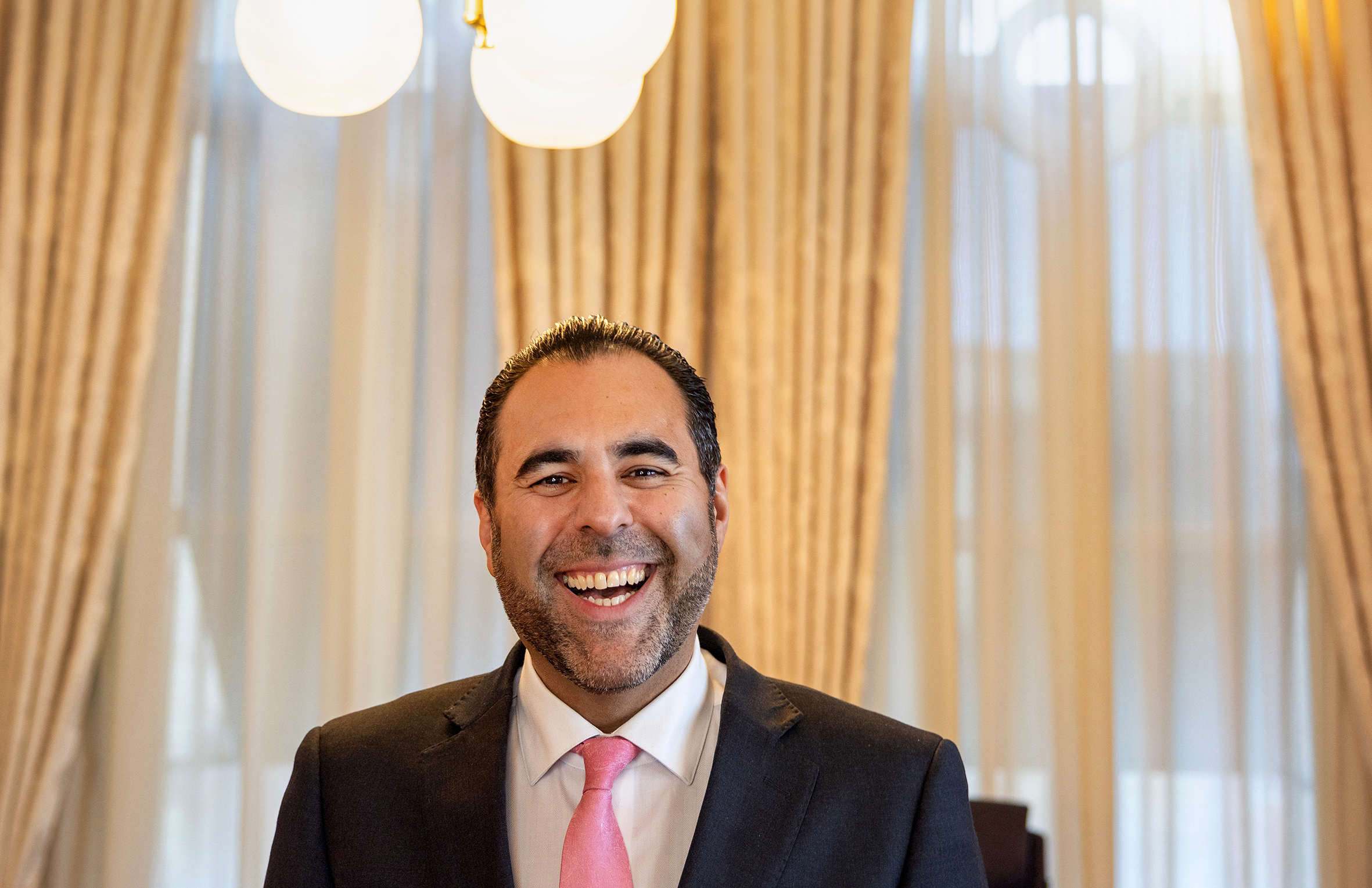 – Vi må være så glade for at vi feirer nasjonaldagen med barnetog og ikke militærparader, sier Masud Gharahkhani. Når han vinker fra stortingsbalkongen tenker han også på sin egen historie.