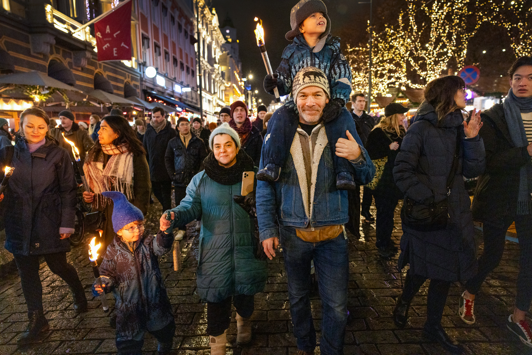 Flere tusen fakler lyser opp en desembermørk Karl Johans gate. Forventningen funkler i unge og gamle øyne. Folkehavet beveger seg sakte i retning Universitetsplassen hvor Frelsesarmeens julegran skal tennes.
