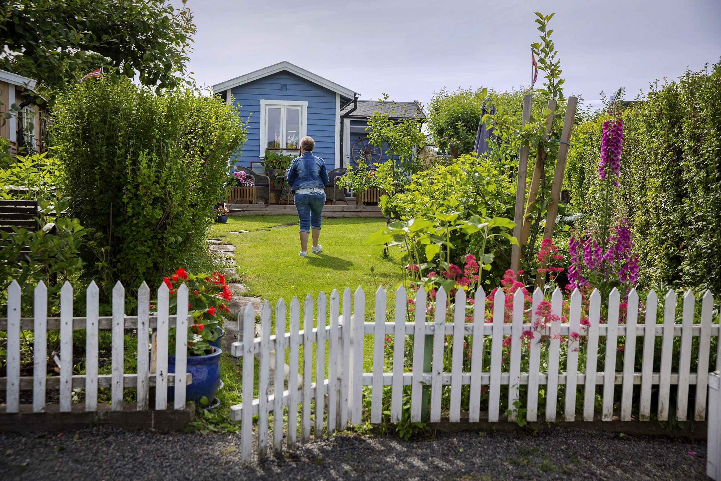 «Her er det», sier Lise O. Luther idet vi vandrer rett inn i et idyllisk akvarellmaleri av Carl Larsson. Dette er Lises sommerparadis, i en kolonihage på Sagene.