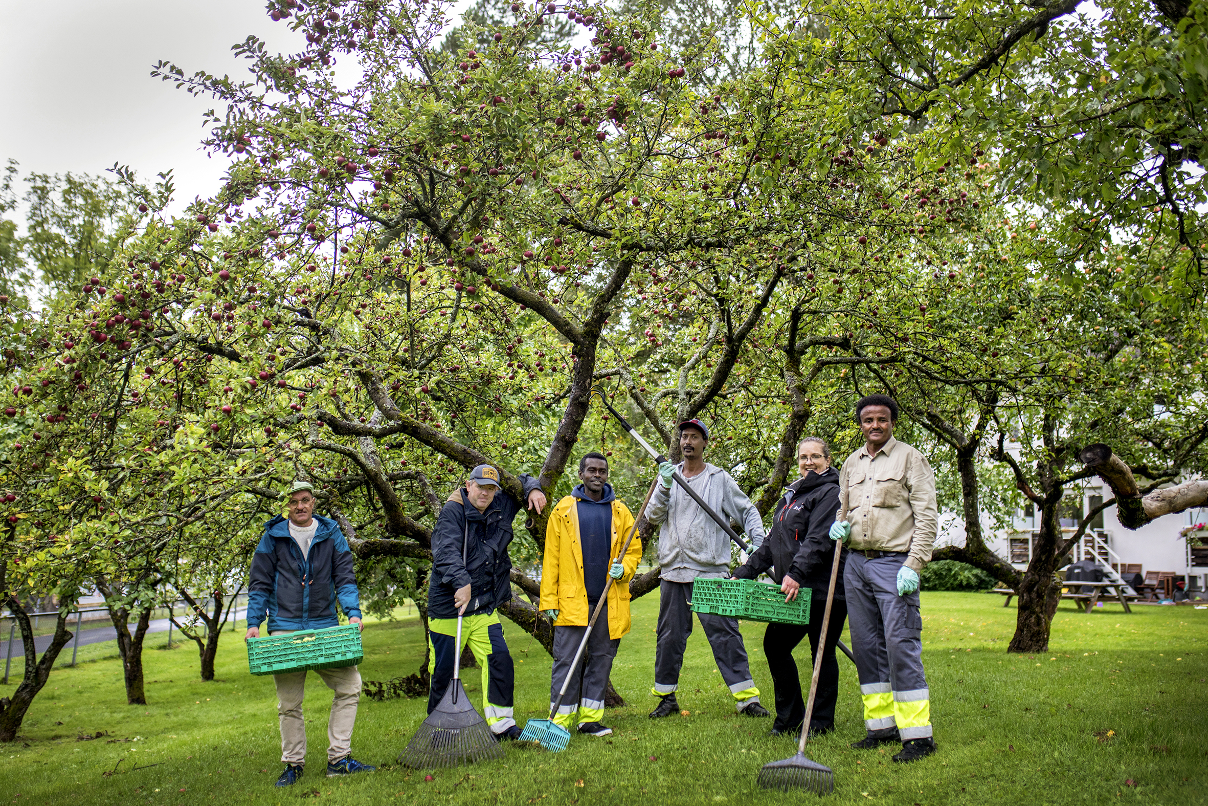 Suksessen fra i fjor fortsetter! Deltakerne fra Jobben tok med glede på seg innhøstingen av 25 tonn epler – på lovlig epleslang i private hager.